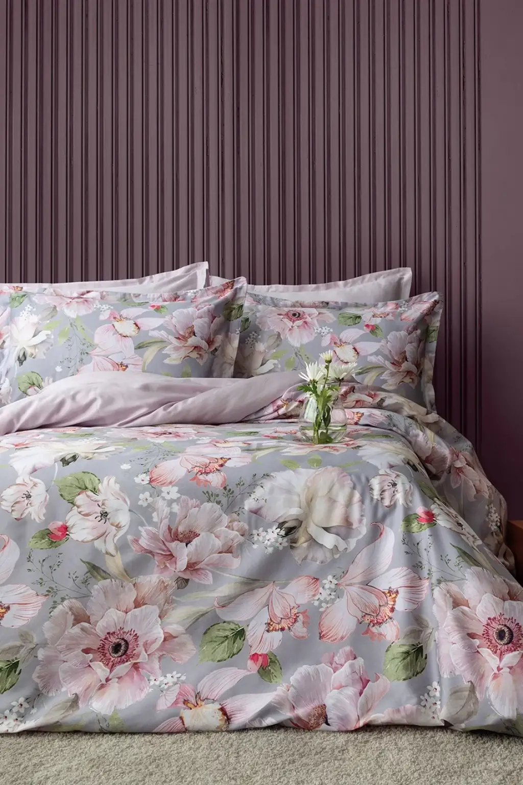 Ecocotton Tria Çift Kişilik Nevresim Takımı Pamuk Saten 210 TC Gri
