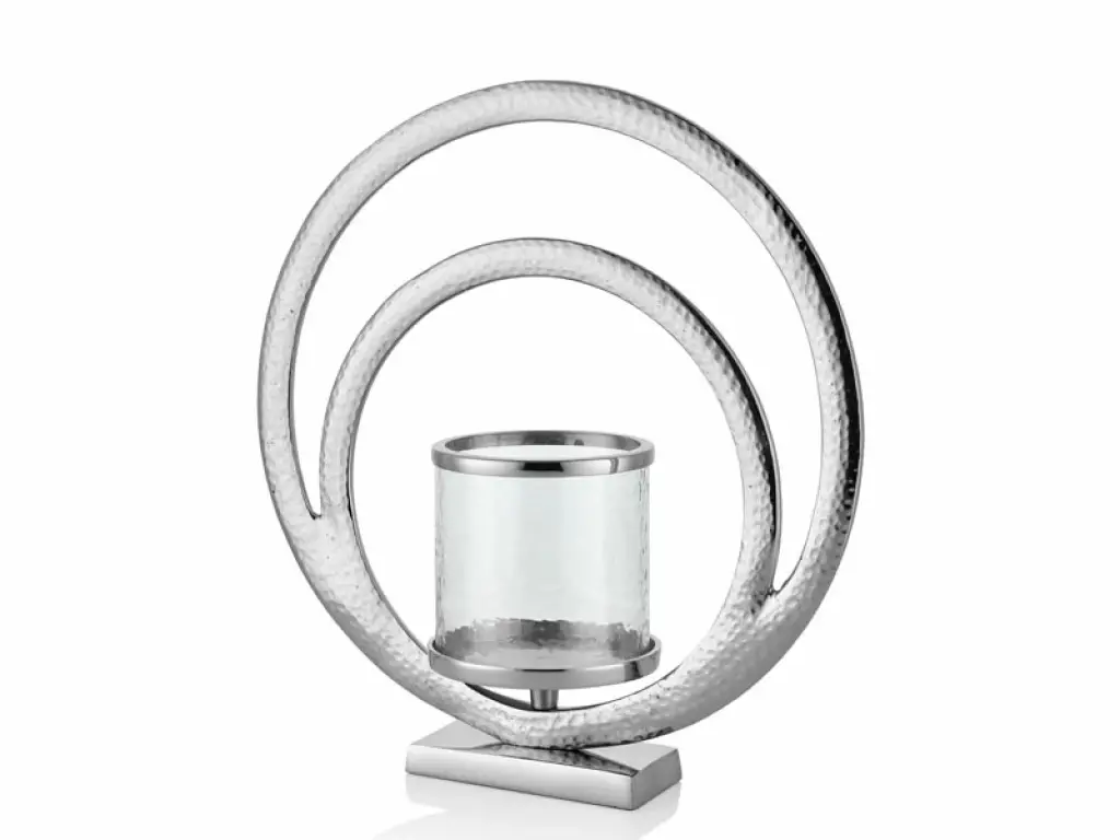 Lamedore Hammered Round Nickel Large Hurricane 39x14x41 Cm